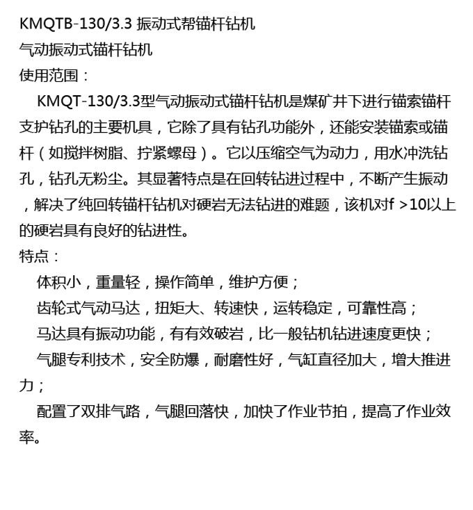 MQT-130/3.5(大功率黄金版)气动锚杆钻机