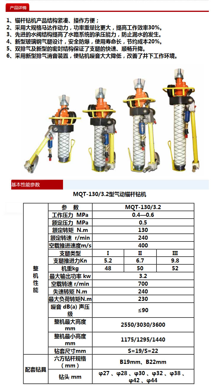 MQT-130/3.5(大功率黄金版)气动锚杆钻机