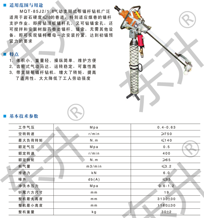 MQT-130/3.5(大功率黄金版)气动锚杆钻机